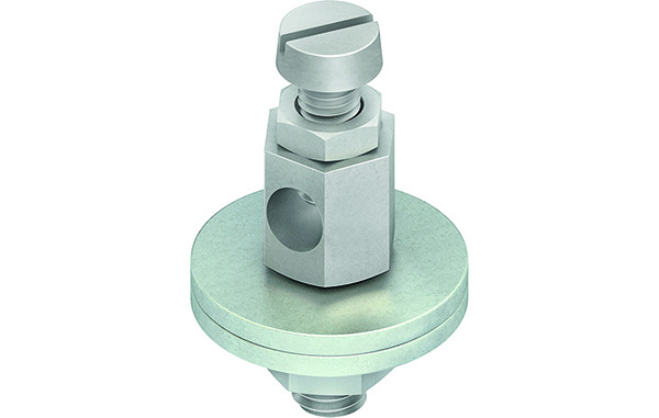 Erdungsklemme, mit Bolzengewinde M6 und Klemmschraube M5. Verwendung für : Erdung von Badewannen und Brausetassen Abmessungen (ca. Maße) Höhe H : 33 - 38 mm Scheiben-Ø : 22 mm für Leiterquerschnitte : 2,5 mm² - 16 mm² Werkstoff Schraubkontakt M6 : Messing, vernickelt Werkstoff Sechskantmutter M5 : Messing, vernickelt Werkstoff Klemmschraube M5 : Messing, vernickelt Werkstoff Flanschmutter M6 und Scheibe : Stahl, galvanisch verzinkt