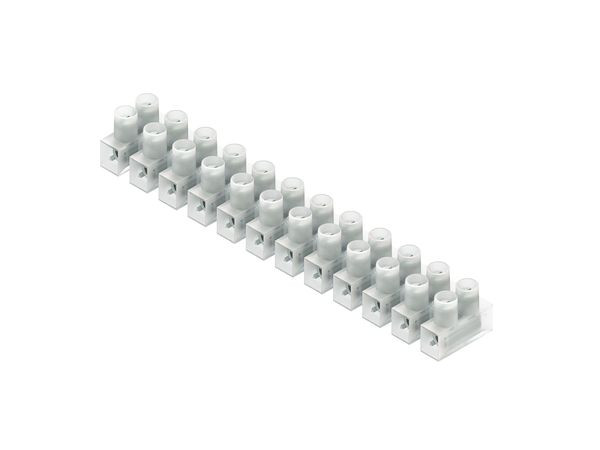 Euro-Klemme nach DIN EN 60998, mit 12 abtrennbaren Klemmstellen, mit Drahtschutz, halogenfrei. Abmessungen (ca. Maße) H x B x L : 20 x 23 x 140 mm Klemmbereich eindrähtig, starr : 2,5 - 6 mm² Werkstoff Isolierteil : PA, flammgeschützt Werkstoff Klemmbolzen : galvanisch beschichtetes Messing Werkstoff Klemmschrauben : galvanisch verzinkter Stahl Max. Umgebungstemperatur nach DIN EN 60998 : T110 Nennspannung : 450 V Farbton : natur