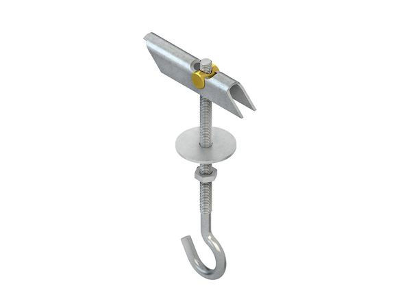 Kippdübel, mit Deckenhaken, inkl. 2 U-Scheiben nach DIN EN ISO 7089 und 2 Sechskantmuttern nach DIN EN ISO 4035, für den Einsatz an Hohlraumdecken und -wänden. Gewinde : M 5 Gewindelänge : 80 mm Gesamtlänge : 130 mm Bohrloch-Ø : 15 mm Erforderliche Hohlraumtiefe : 70 mm max. Plattendicke : 50 mm Tragfähigkeit zul. F : 0,6 kN (die Tragfähigkeitsangaben beinhalten eine 5-fache Sicherheit und gelten nur bei ausreichender Tragfähigkeit des Untergrundes) Werkstoff : Stahl, galvanisch verzinkt Werkstoff Achse : Messing