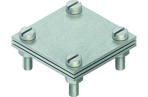 | Kurzbeschreibung | Kreuz-Verbinder 54x54x2 mm mit Klemmplatte, für Flachleiter, Stahl, feuerverzinkt DIN EN ISO 1461 |