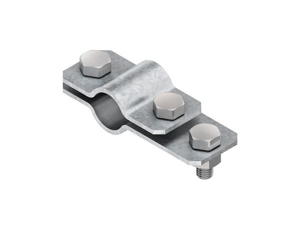 Anschlussschelle nach DIN EN 62561 (VDE 0185-561), einseitiger Anschluss an Bandeisen, zum Anschluss von Bandeisen an Tiefenerder. Verwendung für : Tiefenerder-Ø 20 mm Abmessungen (ca. Maße) Breite B x Länge L x Materialstärke t : 40 x 115 x 3 mm Anschlussmöglichkeiten : 1 Bandeisen max. 30x3,5 mm (313/...F2, 328F..., 329F..., 2317/35/30) 1 Tiefenerder Ø 20 mm (316/20) 1 Rundleiter Ø8 - Ø10 mm unter Verwendung der Anschlussklemme 503/1 Werkstoff Anschlussschelle : Stahl, feuerverzinkt Werkstoff Schrauben/Muttern : Stahl, feuerverzinkt