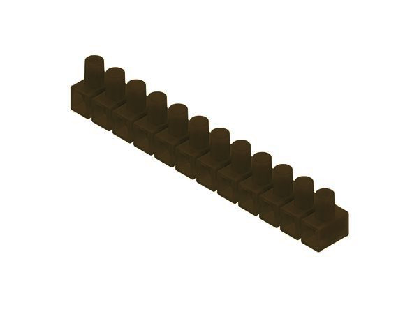 Verbindungsklemme nach DIN EN 60998, mit 12 abtrennbaren Klemmstellen, halogenfrei. Abmessungen (ca. Maße) H x B x L : 17,5 x 15 x 122 mm Klemmbereich eindrähtig, starr, flexibel : 1,5 - 4,0 mm² Anschlussmöglichkeiten eindrähtig : 5 x 1,5 mm², 4 x 2,5 mm², 2 x 4,0 mm² Anschlussmöglichkeiten starr, flexibel : 4 x 1,5 mm², 3 x 2,5 mm², 2 x 4,0 mm² Werkstoff Isolierteil : PA Werkstoff Klemmbolzen : Messing Werkstoff Klemmschrauben : galvanisch verzinkter Stahl Max. Umgebungstemperatur nach EN 60998 : T85 Nennspannung : 450 V Farbton : braun