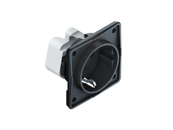 Schutzkontakt-Steckdose, ohne Berührungsschutz, zum Einbau in die CENTRIC-Geräteeinbautanks. für Sockelleistenkanalsystem : SDK50 SDK70 T/SDK50 T/SDK70 Nennspannung : 250 V/16 A Farbton : sepiabraun RAL : 8014 (ähnlich)