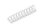 Verbindungsklemme nach DIN EN 60998, Pole einseitig geschlossen, mit 10 abtrennbaren Klemmstellen, mit ausgeprägtem Einführtrichter, halogenfrei. Abmessungen (ca. Maße) H x B x L : 22,5 x 24,5 x 137,5 mm Klemmbereich eindrähtig, starr, flexibel : 2,5 - 6,0 mm² Anschlussmöglichkeiten eindrähtig, starr : 4 x 2,5 mm², 3 x 4,0 mm², 2 x 6,0 mm² Anschlussmöglichkeiten flexibel : 4 x 2,5 mm², 2 x 4,0 mm², 2 x 6,0 mm² Werkstoff Isolierteil : PC - Polycarbonat Werkstoff Klemmbolzen : Messing Werkstoff Klemmschrauben : galvanisch verzinkter Stahl Max. Umgebungstemperatur : 85°C Nennspannung : 450 V Farbton : transparent