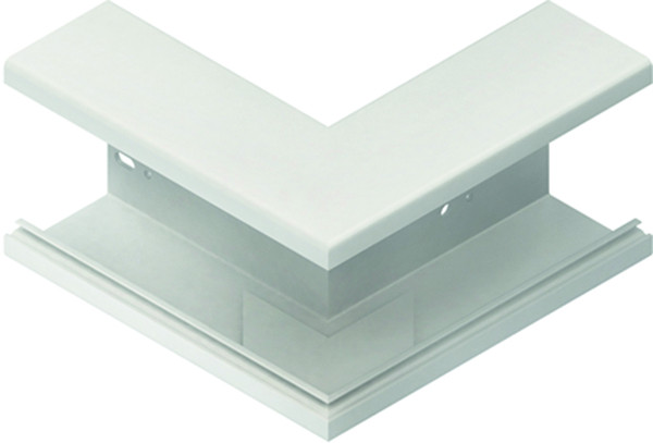 Gerätekanal-Außeneck 90°, einzügig, symmetrisch, mit zwei durchgehenden Aufnahmeprofilen im Rückenteil sowie durchlaufender Perforation im Kanalrücken, einschließlich zwei Kanalkupplungen KUV, Stoßstellenverbinder BSV65 zur exakten Verbindung mit dem Kanalunterteil bitte gesondert bestellen. VDE zertifiziert! Abmessungen (ca. Maße) H x T : 133 x 66 mm Deckelöffnung : 80 mm Schenkellänge aussen : 198 mm für Gerätekanalunterteil : BU651308... Werkstoff : PVC-hart (Polyvinylchlorid) Farbton : reinweiß RAL : 9010 (ähnlich)