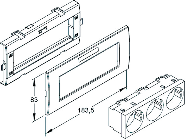 Für Brüstungskanäle BU65..., anschlussfertig vorverdrahtet, komplett mit Adapter/- und Abdeckrahmen, mit Beschriftungsfeld, erhöhter Berührungsschutz