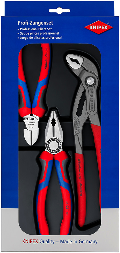 | Kurzbeschreibung | KNIPEX 00 20 09 V01 Bestseller-Paket 1 x 03 02 180, 1 x 70 02 160, 1 x 87 01 250 |