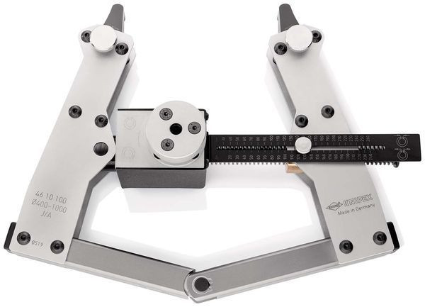 46 10 100 Sicherungsringwerkzeug Universell einsetzbar für große Sicherungsringe von 400 - 1000 mm Nennweite. Sicheres Öffnen und Schließen der Ringe und Halten durch selbsthemmenden Präzisions-Spindeltrieb. Montage oder Demontage der Sicherungsringe in einem Arbeitsgang. Sicherer Halt des Ringes durch kurze, direkte Aufnahmen. Austauschbare Spitzen mit Ø 6 mm und 9 mm, für unterschiedliche Durchmesserbereiche. Bedienung wahlweise mit Innensechskantschlüssel, Ratschenschlüssel oder Akku-Schrauber. Anwendungsbereiche überall dort, wo mit grossen Wellen und Lagern sehr hohe Kräfte und Drehmomente übertragen werden müssen, z. B. Windkraftanlagen, Gezeitenanlangen, Generatorenbau, Wasserkraftanlagen, Großmaschinenbau (Walzstraßen, Pressen), Schiffsbau, Luft- und Raumfahrt. Werkzeug im Kunststoffkoffer mit Schaumstoffeinlage. - Kapazität für Wellendurchmesser: Ø 400 – 1.000mm - Kapazität für Bohrungsdurchmesser: Ø 400 – 1.000mm