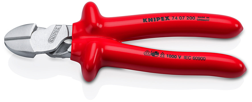 | Kurzbeschreibung | KNIPEX 74 07 200 Kraft-Seitenschneider tauchisoliert, VDE-geprüft verchromt 200 mm |