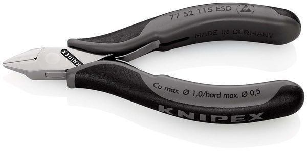 | Kurzbeschreibung | KNIPEX 77 52 115 ESD Elektronik-Seitenschneider ESD mit durchgestecktem Gelenk mit Mehrkomponenten-Hüllen 115 mm |