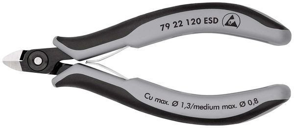 | Kurzbeschreibung | KNIPEX 79 22 120 ESD Präzisions-Elektronik-Seitenschneider ESD mit Mehrkomponenten-Hüllen brüniert 120 mm |