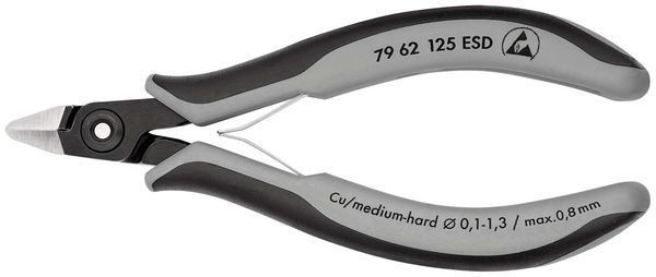 | Kurzbeschreibung | KNIPEX 79 62 125 ESD Präzisions-Elektronik-Seitenschneider ESD mit Mehrkomponenten-Hüllen brüniert 125 mm |