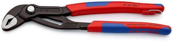 | Kurzbeschreibung | KNIPEX 87 02 250 T Cobra® Hightech-Wasserpumpenzange mit Mehrkomponenten-Hüllen, mit integrierter Befestigungsöse zum Anbringen einer Absturzsicherung grau atramentiert 250 mm |