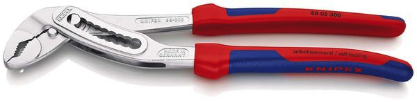| Kurzbeschreibung | KNIPEX 88 05 300 Alligator® Wasserpumpenzange mit Mehrkomponenten-Hüllen verchromt 300 mm |