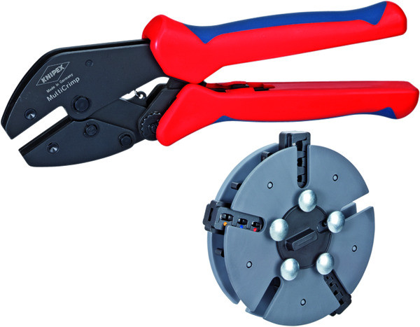97 33 01 KNIPEX MultiCrimp® Nur ein Werkzeug für die gängigsten Crimpanwendungen. Schnelles und einfaches Wechseln der Crimpeinsätze ohne Zusatzwerkzeug. Sichere und geschützte Aufbewahrung der Wechseleinsätze in einem Rundmagazin. Komfortable, leistungsstarke Crimpzange in Profi-Qualität. Zuverlässige Crimpergebnisse wie bei fest montierten Crimpeinsätzen. Gleichbleibend hohe Crimpqualität durch Präzisionseinsätze und Zwangssperre (entriegelbar). Die Crimpeinsätze 97 49 xx der Crimp-Systemzange 97 43 200 sind nicht kompatibel mit der KNIPEX MultiCrimp 97 33 01/02. - Anwendung: unisolierte, offene Flachsteckverbinder (4,8 + 6,3 mm Steckerbreite) - Kapazität Quadratmillimeter: 0,25 — 6,0mm² - Anzahl der Nester: 3 - AWG: 20 — 10