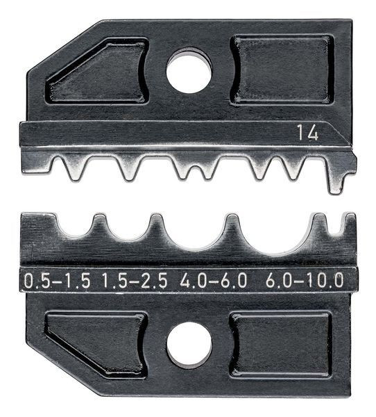 | Kurzbeschreibung | KNIPEX 97 49 14 Crimpeinsatz für unisolierte Rohr- und Quetschkabelschuhe sowie unisolierte Stoß- und Quetschverbinder nach DIN 46341 |