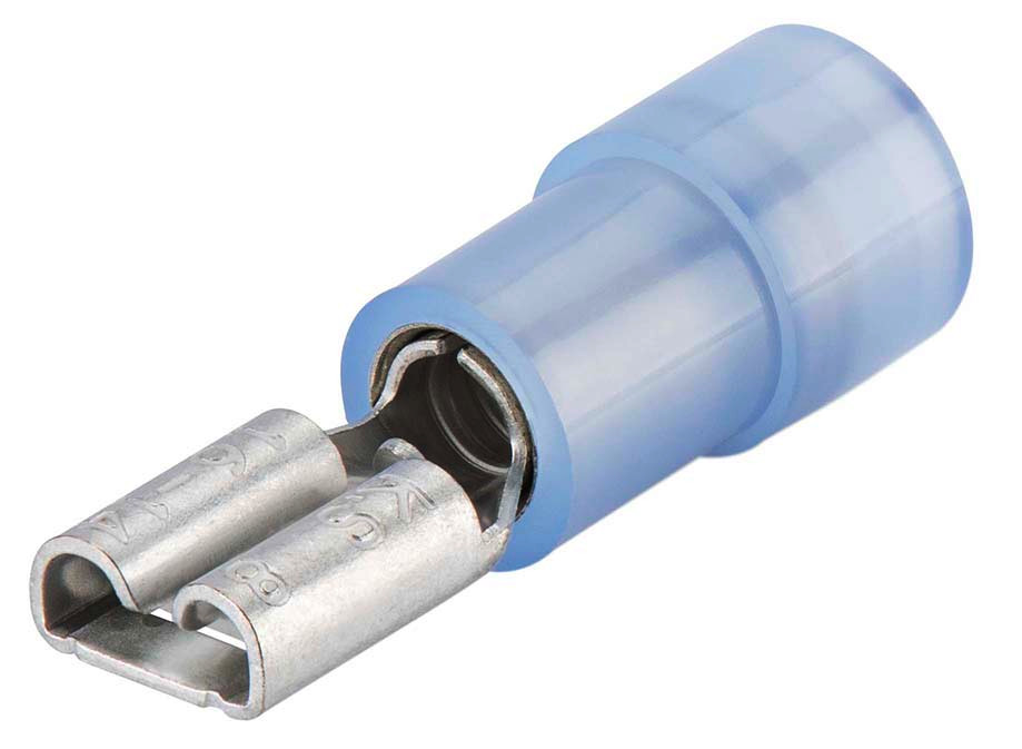 97 99 030 Flachsteckhülsen Werkstoff: Messing, verzinnt. Isolation: Nylon. Max. Temperatur: 105 °C. Max. elektrische Belastung: 600 V. Inhalt: 100 Stück. Kennfarbe: blau. Kabel 1,5 – 2,5mm² AWG 16 — 14 Kennfarbe blau Menge 100 Isolation Nylon Werkstoff Messing Oberfläche reinverzinnt Max. Temperatur 105°C Max. elektrische Belastung 600 V Steckerbreite 8mm