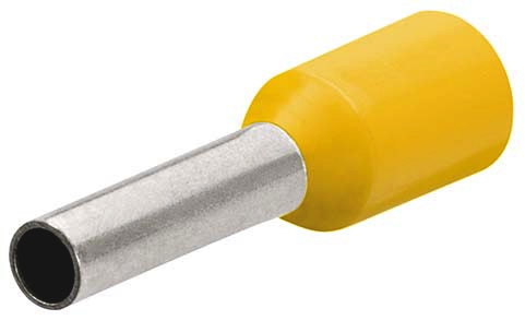 97 99 356 Aderendhülsen mit Kunststoffkragen Einführtrichter aus Polypropylen. Wärmebeständig bis 105 °C. Werkstoff: E-Cu. Oberfläche galvanisch verzinnt. Mindestschichtdicke 3 µm. UL-Zertifiziert. Nenngröße: 6 mm². Inhalt: 100 Stück. Kennfarbe: gelb. Kabel 6mm² AWG 10 Kennfarbe gelb L1 26mm L2 18mm d1 3,5mm d2 6,3mm S1 0,2mm S2 0,3mm Menge 100 Isolation PP Werkstoff Kupfer Oberfläche reinverzinnt