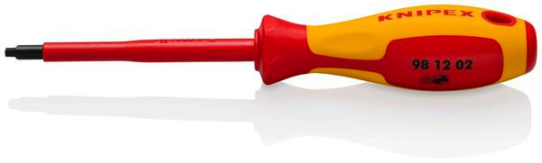 | Kurzbeschreibung | KNIPEX 98 12 02 Schraubendreher für Robertsonschrauben R2 isoliert mit Mehrkomponenten-Hüllen, VDE-geprüft brüniert 210 mm |