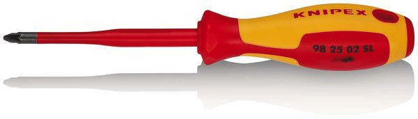 | Kurzbeschreibung | KNIPEX 98 25 02 SL Schraubendreher (Slim) für Kreuzschlitzschrauben Pozidriv® isolierender Mehrkomponenten-Griff, VDE-geprüft brüniert 212 mm |