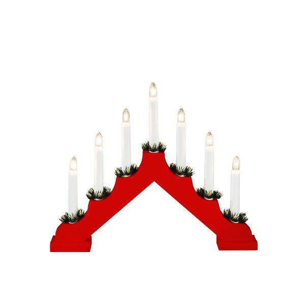 Kerzenleuchter aus Holz, rot lackiert, 7 klare Birnen, 230V