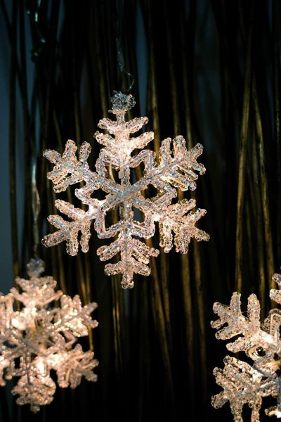 Schneeflocken 30ww LEDs Motiv: Sterne oder Schneeflocken, mit warm.weißen oder kalt.weißen LEDs, für innen, inkl. 24V Innentrafo, Lampenabstand 10cm, Zuleitung 500cm, L 400 cm