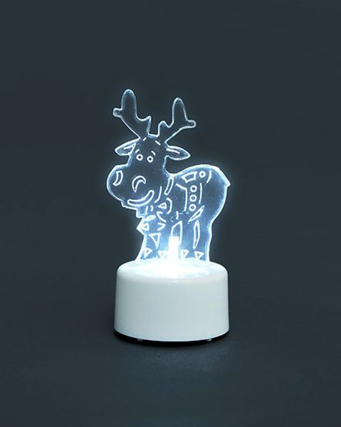 Rentier aus Acryl für den Innenbereich, mit 1 weißer LED, Batteriebetrieben 3x CR 1,5 V (nicht im Lieferumfang), H x Ø 8,5 x 4 cm,