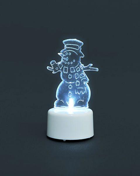 Schneemann aus Acryl für den Innenbereich, mit 1 weißer LED, Batteriebetrieben 3x CR 1,5 V (nicht im Lieferumfang), H x Ø 8,5 x 4 cm,