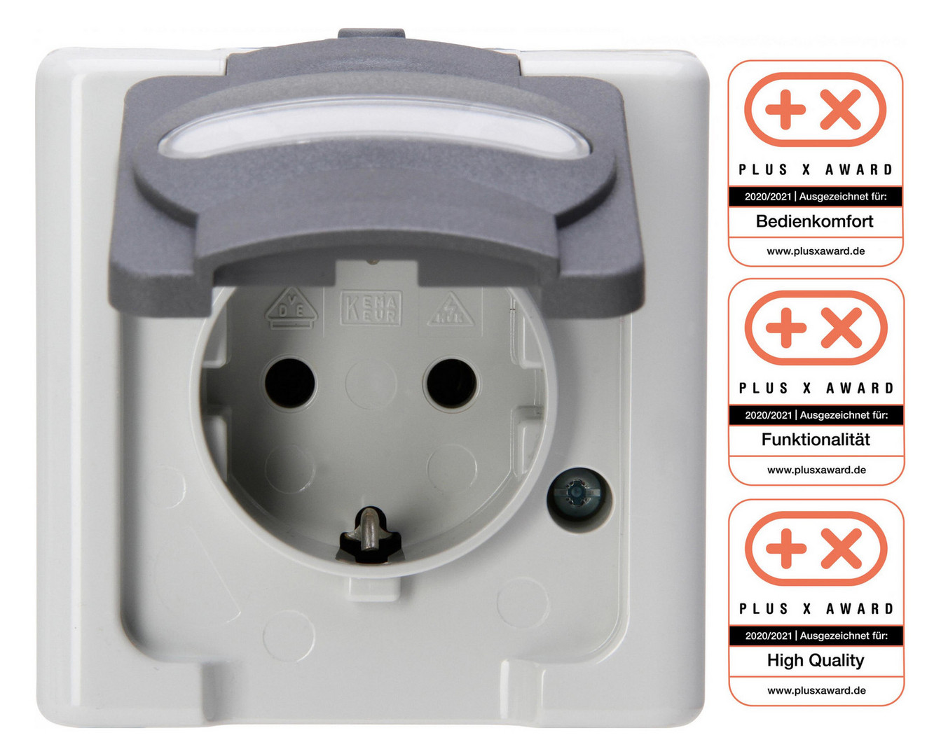 | Kurzbeschreibung | BLUE ELECTRIC - Schutzkontakt-Steckdose mit Klappdeckel, Farbe: grau |