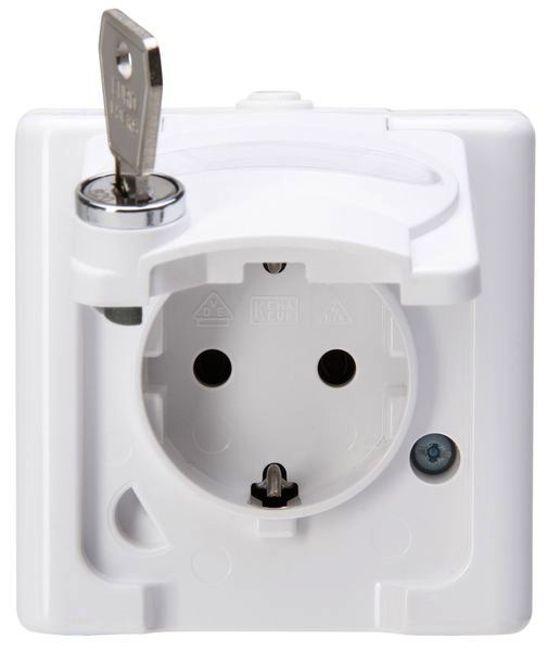 | Kurzbeschreibung | BLUE ELECTRIC - Schutzkontakt-Steckdose mit Klappdeckel und Sicherheitsschloss (Nr. 0), Farbe: arktisweiß |