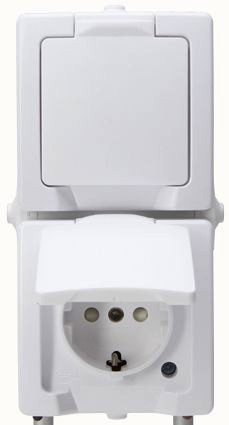 | Kurzbeschreibung | NAUTIC - Schutzkontakt-Steckdose, 2-fach, Klappdeckel, erhöhter Berührungsschutz, senkrecht, Farbe: arktisweiß |