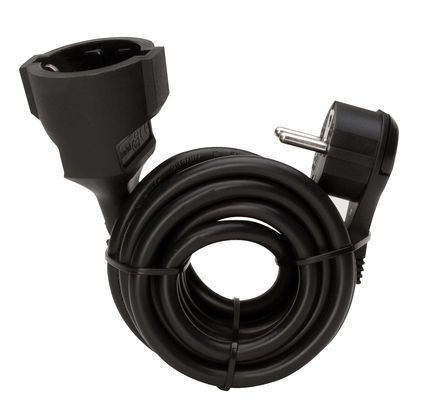 | Kurzbeschreibung | Verlängerung, Schutzkontakt-Winkelstecker, extra flach (8mm) und Schutzkontakt-Kupplung mit 5m Leitung, Farbe: schwarz |