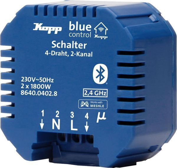 Blue-control Schaltaktor, Serienschalter 2-Kanal, 4-Draht, mit Bluetooth Mesh-Technologie, 230V~, 50Hz, 2x 1800W, 2,4GHz, Schutzart IP20