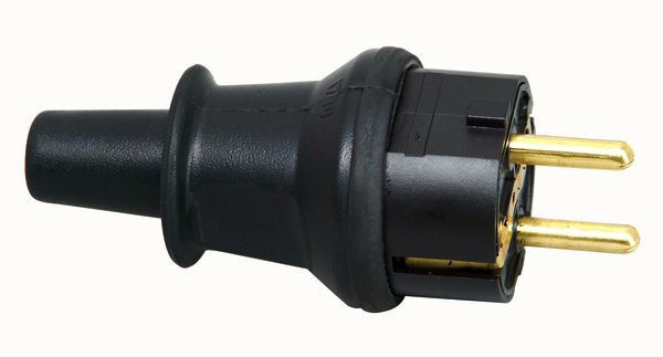 Schutzkontakt-Stecker - 2 Schutzkontaktsysteme gem. Norm CEE 7/VII und Knickschutz, Kabelquerschnitt bis 3x1,5 mm², 16 A, 250 V~, IP44, Farbe: schwarz