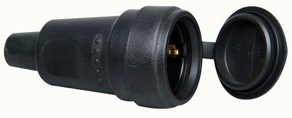 | Kurzbeschreibung | Schutzkontakt-Gummikupplung, großes Modell, Schutzartkappe, Knickschutz, bruchfest, schlagfest, für Kabelquerschnitt bis 3x2,5mm², Farbe: schwarz |