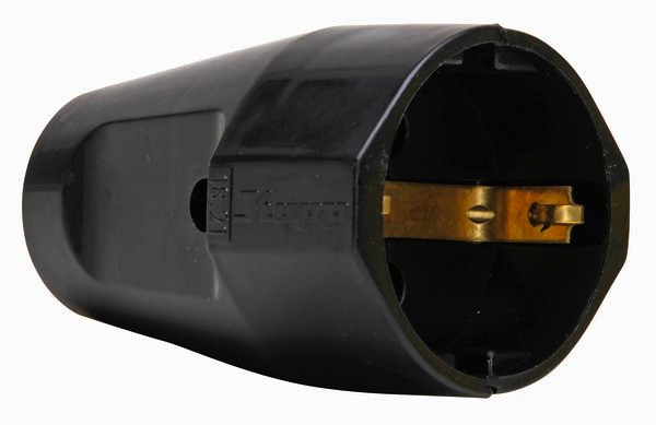 | Kurzbeschreibung | Kunststoff-Schutzkontakt-Schalenkupplung, bruchfest, für Kabelquerschnitt bis 3x1,5mm², Farbe: schwarz |