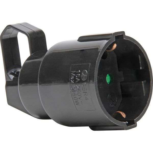 Kunststoff-Schutzkontakt-Kupplung mit Abzugshilfe, für Kabelquerschnitt bis 3x1,5mm², 16 A, 250V~, Schutzklasse IP20, Farbe: schwarz