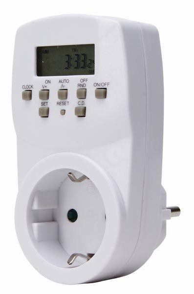 | Kurzbeschreibung | Zeitschaltuhr Mini, digital, erhöhter Berührungssschutz, Count-Down und Zufallsfunktion, 140 Programme, max. 1.800W, Farbe: weiß |