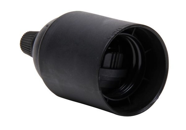 Isolierstoff-Fassung, E27, glatter Mantel, mit eingeschraubter Zugentlastung, Material: Kunststoff, lose mit EAN-Auszeichnung, Farbe: schwarz