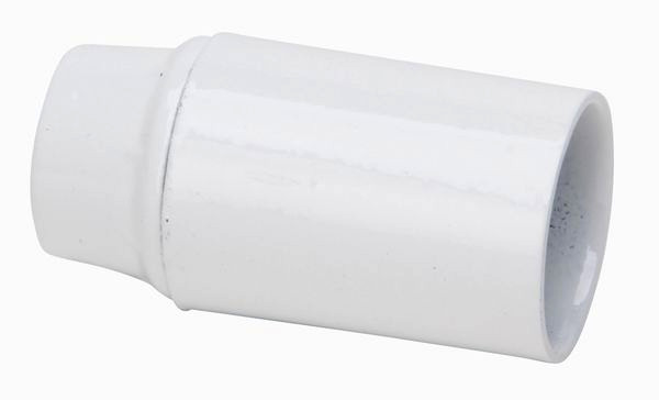 Bakelit-Fassung, E14, glatter Mantel, Kappe mit Schraubgewinde, M10x1, Verpackung: lose mit EAN-Auszeichnung, Farbe: weiß