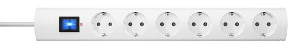 | Kurzbeschreibung | UNOversal PLUS 6-fach, Geräteschutz-ÜSS, Schalter, erhöhter Berührungssschutz, anschraubbar, 90° gedrehte Töpfe, 1,4m Zuleitung, Farbe: weiß |