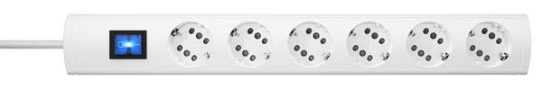 DUOversal Plus, 6=12, je Steckdosentopf Anschlussmöglichkeit für einen Schutzkontakt- oder zwei Eurostecker, mit 2-poligem beleuchteten Schalter, mit erhöhtem Berührungsschutz, mit 35° gedrehten Töpfen,Topfabstand 52mm, Zuleitung H05VV-F3G1,5mm², 1,4m, anschraubbar, 16A, 250V~, Farbe: weiß