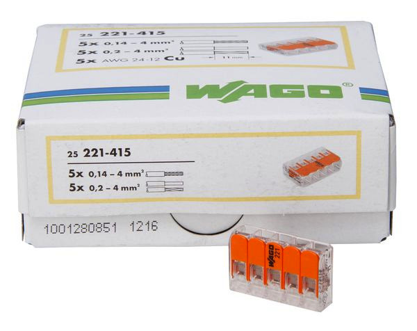 | Kurzbeschreibung | WAGO COMPACT-Verbindungsdosenklemme, mit Hebel, max. 4mm², 5 Leiter, Profi-Pack: 25 Stück |