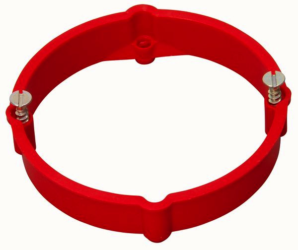 Putzausgleichsring, Tiefe: 12mm, für Ø60mm UP-Schalterdose, rot, zum Ausgleich von zu tief sitzenden Gerätedosen und Verbindungsdosen, mit vormontierten Geräteschrauben (Länge 15mm), Putzausgleichsringe mit gleichem Durchmesser können aufeinander montiert werden