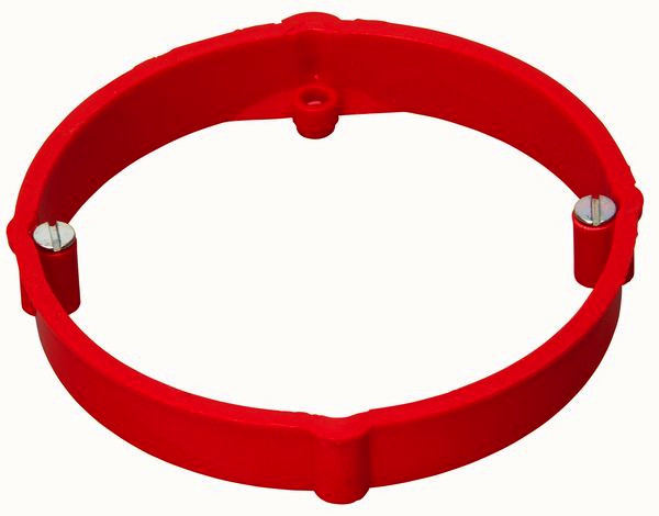 Putzausgleichsring, Tiefe: 12mm, für Ø70mm UP-Schalterdose, rot, zum Ausgleich von zu tief sitzenden Gerätedosen und Verbindungsdosen, mit vormontierten Geräteschrauben (Länge 15mm), Putzausgleichsringe mit gleichem Durchmesser können aufeinander montiert werden