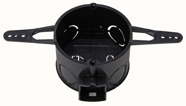 | Kurzbeschreibung | UP Schalterdose mit Nagellaschen, Durchmesser: 60mm, Dosentiefe: 41mm, schwarz, IP20 |