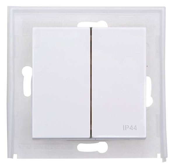 HK07 IP44 - Flächendoppelwippe für Ausschalter, Universalschalter, Kreuzschalter, Taster, ohne Linse, mit Federplatte und Dichtungsring, Farbe: reinweiß