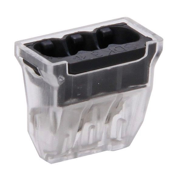 Steckklemme, 3-polig, für 0,5-2,5mm² eindrähtige Leiter, 1,5-2,5mm² starre mehrdrähtige Leiter, Farbe: dunkelgrau/transparent