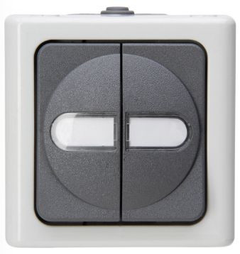 BLUE ELECTRIC - Aufputz-Feuchtraum Serienschalter, Bemessungsspannung 250V~, Schaltvermögen 10AX, Schutzart IP44, Farbe: grau