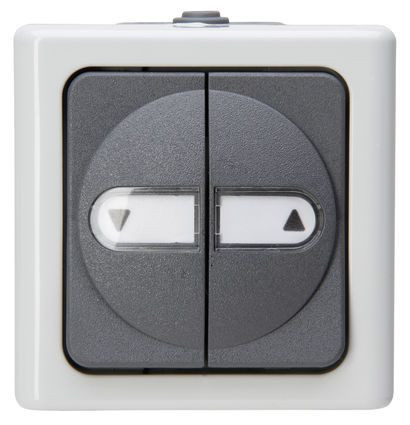 BLUE ELECTRIC - Aufputz-Feuchtraum, Jalousie-Taster mit Umkehrsperre - elektrisch und mechanisch verriegelt, Betätigungswippen mit Pfeil-Symbol, 10AX, 250V~, IP44, Farbe: grau